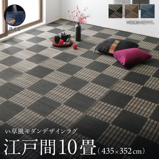 洗える ラグ カーペット 日本製 PP ポリプロピレン アトピー ダイニング ダイニングラグ キャンプ アウトドア 和モダン い草風モダンデザインラグ ラグ 江戸間10畳(435×352cm)