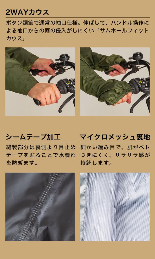 ・2WAYカウス:ボタン調整で浮乗の袖口仕様、伸ばしてハンドル操作による袖口からの雨の侵入がしにくい。※独自のサムホールフィットカウス