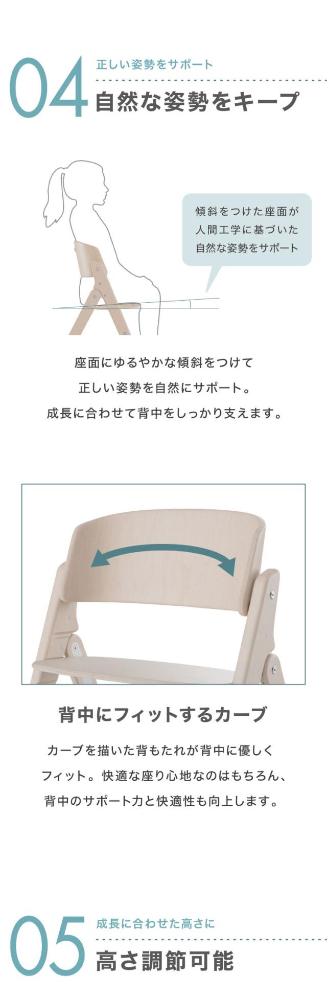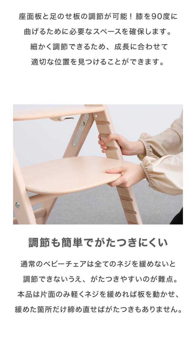 ・お子さまに合わせて座席の深さや足のせ板の調節が可能 など
