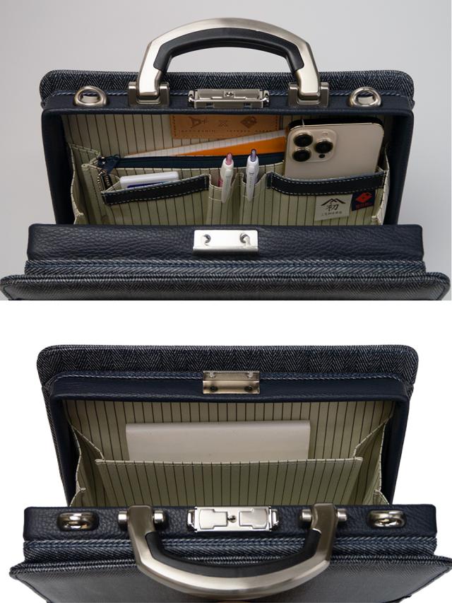 豊岡鞄 ビジネスバッグ メンズ 小さい 井原デニム 自立 2way ダレス おしゃれ 40代 50代 通勤 カバン 鞄 ビジネスショルダーバッグ 斜めがけ ショルダーバッグ ビジネス 1本手 アルミ取手 デニム ミニダレスバッグ MH3300