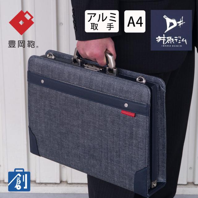 豊岡鞄 ビジネスバッグ メンズ a4 井原デニム 自立 2way ブリーフケース おしゃれ 40代 50代 通勤 カバン 鞄 ビジネスショルダーバッグ 斜めがけ ショルダーバッグ ビジネス 1本手 アルミ取手 デニム ダレスバッグ MH3301
