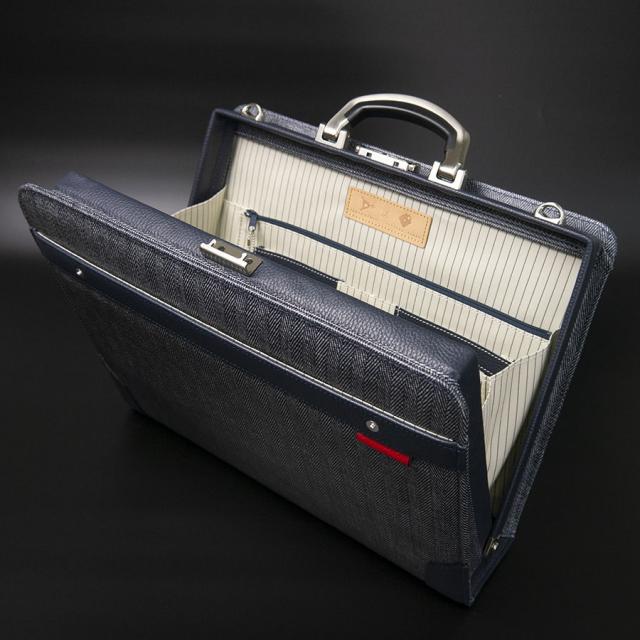 ■※アルミ取っ手は、製造段階で細かい筋等が発生している場合があります ■中央のパーツをつまむだけでワンタッチで大きく開く口枠式のダレスバッグです。自立するので荷物の出し入れもしやすい、シンプルで美しいバッグです ■魚の骨のような柄であることからへリンボンと呼ばれるデニムにPUコーティングを施してあります。つるっとした肌さわりで色落ちを防ぎ撥水効果もあります。同系色の革付属が引き締めてくれています ■A4ファイル対応サイズ 肩当付ショルダーベルトと鍵が付属しています ■「まごころ込めた正直なモノづくり」をかかげる兵庫県豊岡市「三宅初治商店」の「豊岡鞄」の認定をうけた高い技術と手間暇を要するダレスバッグです ■【豊岡鞄】とは【兵庫県鞄工業組合】が定めた基準を満たす企業によって生産され、審査に合格した商品を「豊岡鞄」として認定しています。兵庫県豊岡市は奈良時代から始まる柳細工を起源として千年の歴史を持つかばんの産地です。 ■【井原デニム】とは井原デニム審議会が認定する一定の基準をクリアしている製品のみが使用できるブランドです。戦国時代末期に綿織りが、江戸時代に藍が伝わり厚地の綿布が岡山県井原市の特産品になったのが始まりで現在ではデニムの無限の可能性を創造し続け「デニムの聖地」と呼ばれています。 ■豊岡鞄認定保証書付 Webでの保証書の登録をお勧めします |