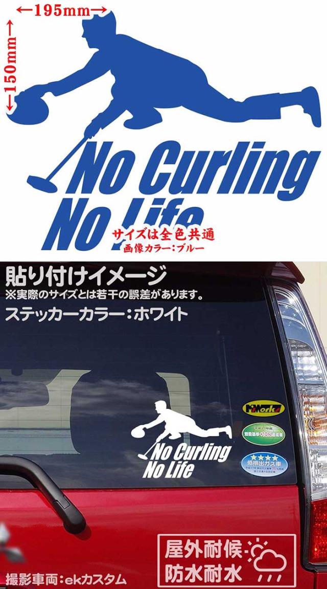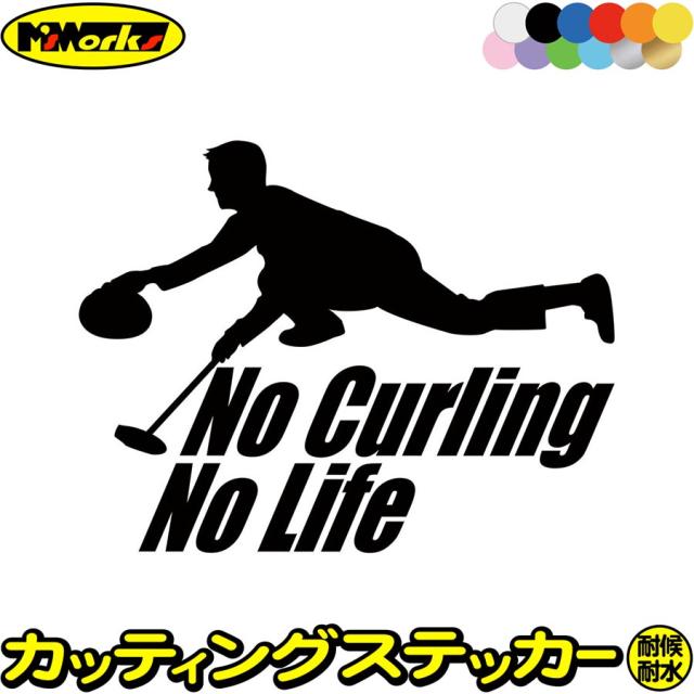 カーリング ステッカー No Curling No Life ( カーリング )1 カッティングステッカー 全12色 車 ガラス かっこいい おもしろ nolife グッズ ノーライフ ノー カーリング ステッカー 防水 耐水 アウトドア デカール 転写シール 150mmX195mm (SP)