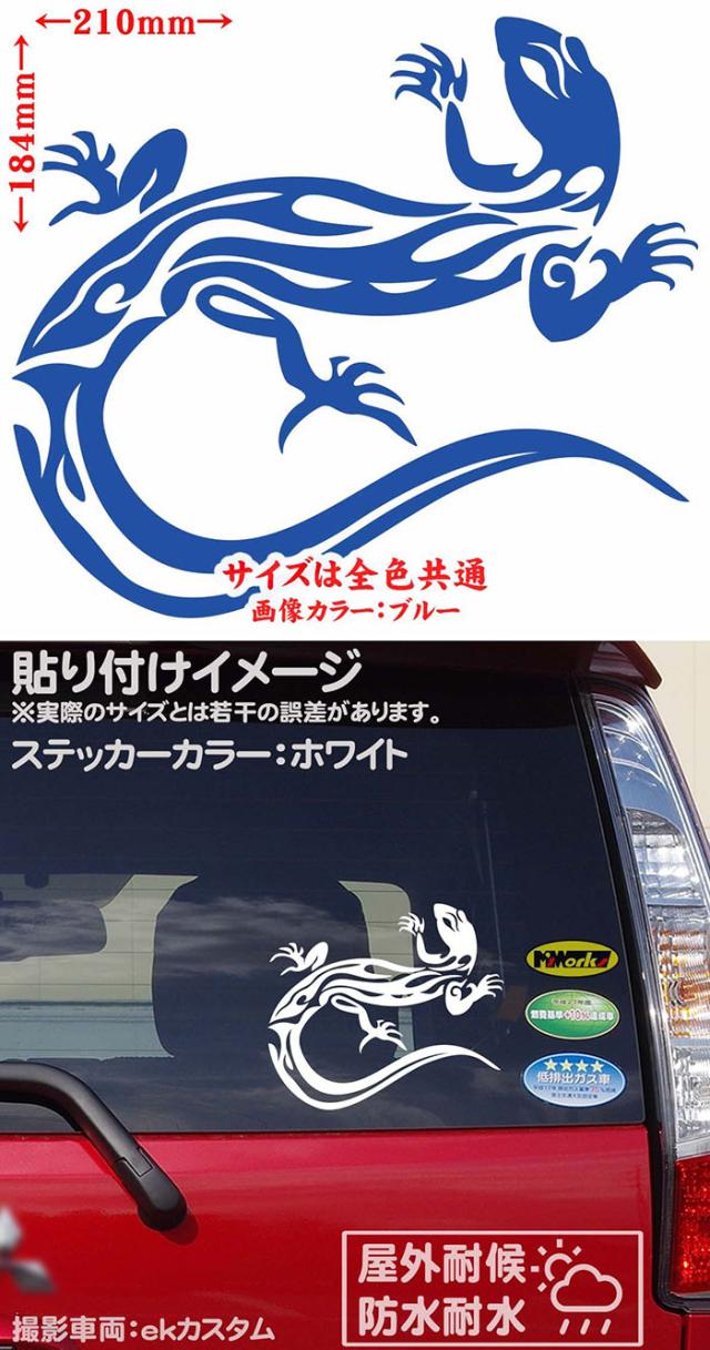 車 かっこいい ステッカー トカゲ 蜥蜴 トライバル 10(左向き) サイズL カッティングステッカー 全12色 バイク おしゃれ ユニーク 傷 キズ隠し ボディ トカゲ ステッカー 防水 耐水 アウトドア デカール 転写シール 184mmX210mm