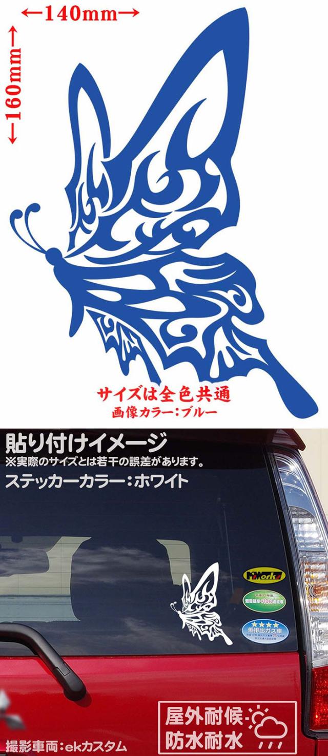 車 かっこいい ステッカー 蝶 バタフライ トライバル 16(左向き) カッティングステッカー 全12色 バイク おしゃれ ユニーク キズ隠し ボディ カウル 蝶々 バタフライ ステッカー 防水 耐水 アウトドア デカール 転写シール 160mmX120mm