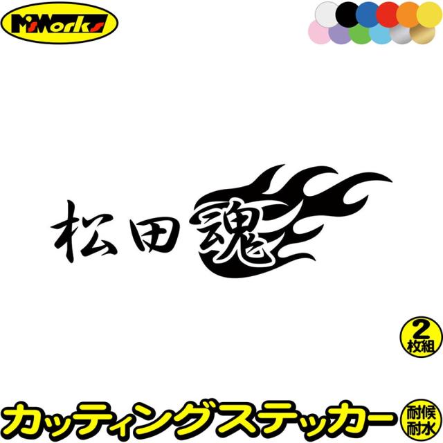 マツダ mazda ステッカー 松田魂 ( マツダ ダマシイ ) (2枚1セット) カッティングステッカー 全12色 車 かっこいい スピリット リア サイド ウィンドウ ガラス ファイヤー ステッカー 防水 耐水 アウトドア デカール 転写シール 65mmX195mm (C)