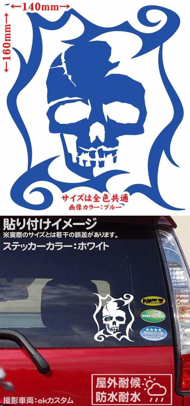 バイク 車 かっこい ステッカー スカル ドクロ 死神 トライバル 10 カッティングステッカー 全12色 骸骨 頭蓋骨 骨 海賊 skull おしゃれ ユニーク スーツケース カウル ステッカー 防水 耐水 アウトドア デカール 転写シール 160mmX140mm