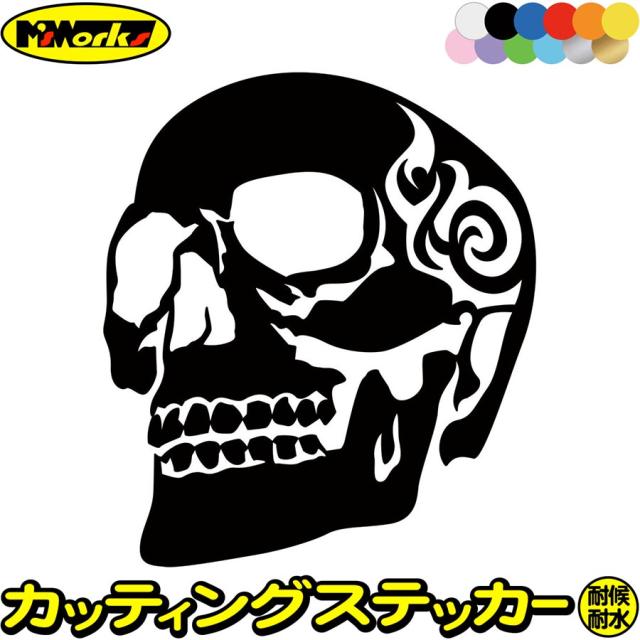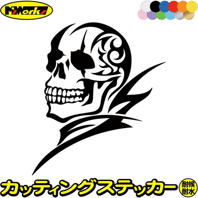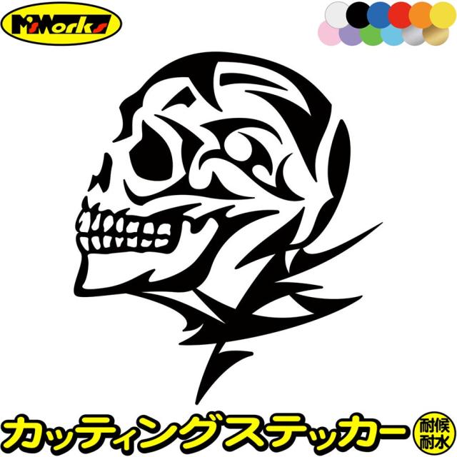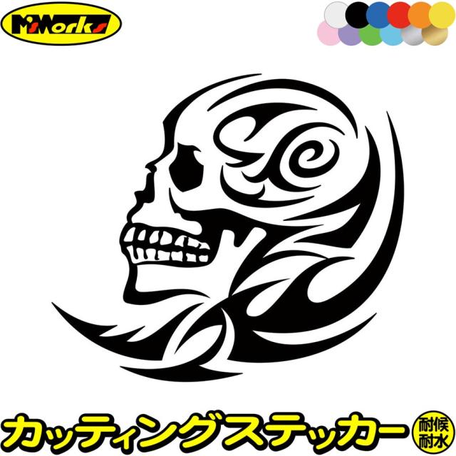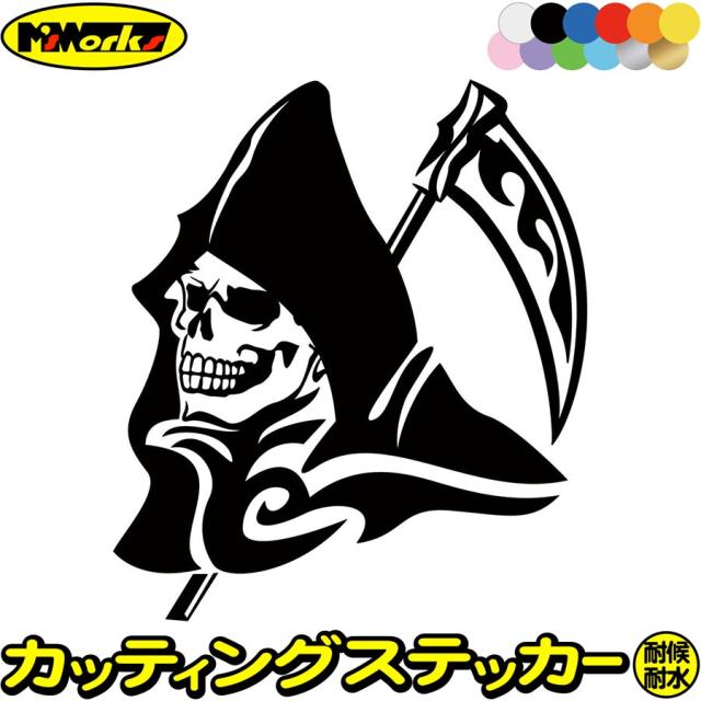 死神 スカル ドクロ トライバル 1(左向き) カッティングステッカー 全12色 バイク 車 スーツケース かっこいい 骸骨 海賊 おしゃれ ハロウィン ウィンドウ 窓 死神 ステッカー 防水 耐水 アウトドア デカール 転写シール 160mmX120mm