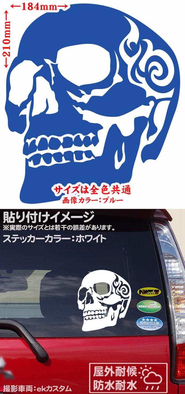 ドクロ ステッカー スカル ドクロ 死神 トライバル 3(左向き) サイズL カッティングステッカー 全12色 車 バイク スーツケース かっこいい おしゃれ 骸骨 海賊 ドクロマーク ステッカー 防水 耐水 アウトドア デカール 転写シール 210mmX184mm