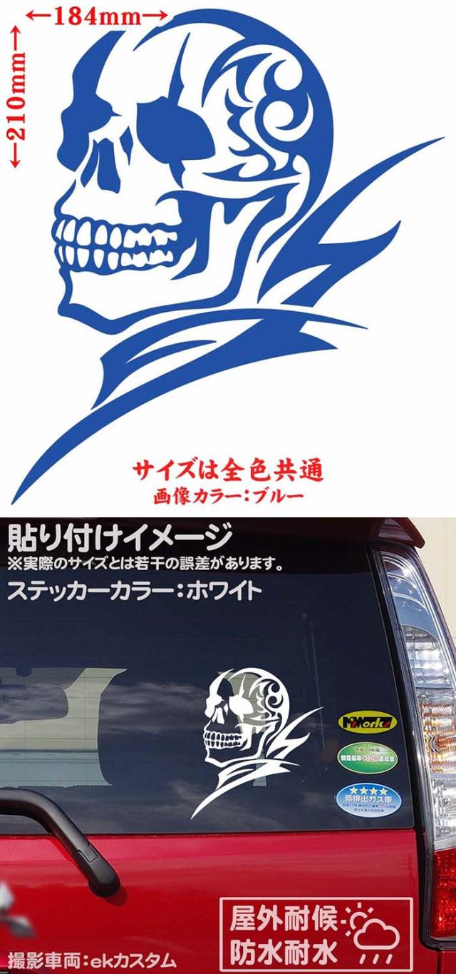 車ステッカー カーステッカー 車用 カー用品 スカル ドクロ 死神 トライバル 8(左向き) サイズL カッティングステッカー 全12色 おしゃれ 骸骨 ハロウィン ウィンドウ 窓 ドクロ ステッカー 防水 耐水 アウトドア デカール 転写シール 210mmX184mm