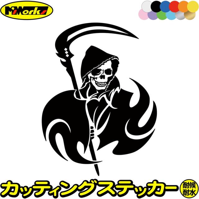 ドクロ スカル 死神 トライバル 1(右向き) サイズL カッティングステッカー 全12色 車 バイク かっこいい おしゃれ 骸骨 海賊 ヤンキー ウィンドウ ハロウィン ドクロ ステッカー 防水 耐水 アウトドア デカール 転写シール 210mmX158mm