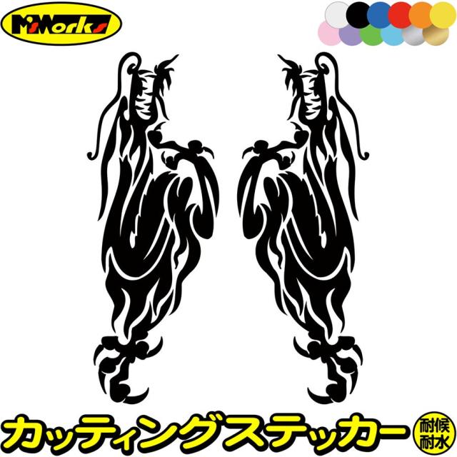 ドラゴン ステッカー ドラゴン 龍 竜 トライバル 2-21(左右セット) サイズL カッティングステッカー 全12色 車 バイク かっこいい 龍神 キズ隠し タンク ガラス ボンネット ステッカー 防水 耐水 アウトドア デカール 転写シール 195mmX73mm