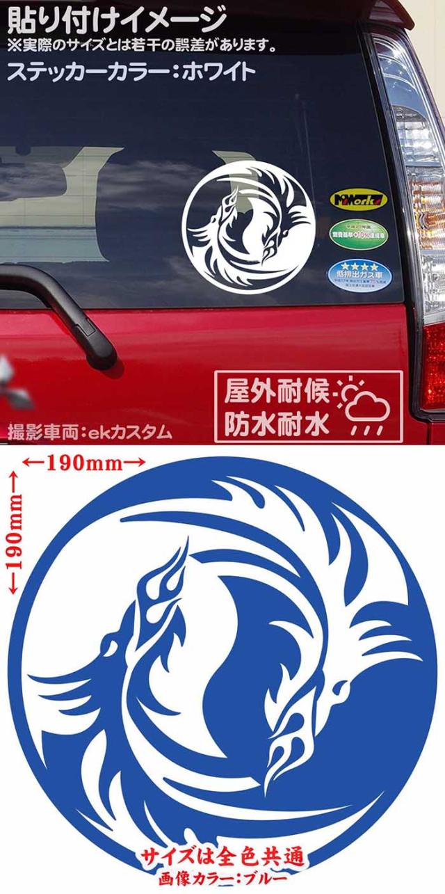 ドラゴン ステッカー ドラゴン 龍 竜 トライバル 4-11 サイズL カッティングステッカー 全12色 車 バイク かっこいい 龍神 おしゃれ 傷隠し タンク カウル ボンネット ステッカー 防水 耐水 アウトドア デカール 転写シール 190mmX190mm