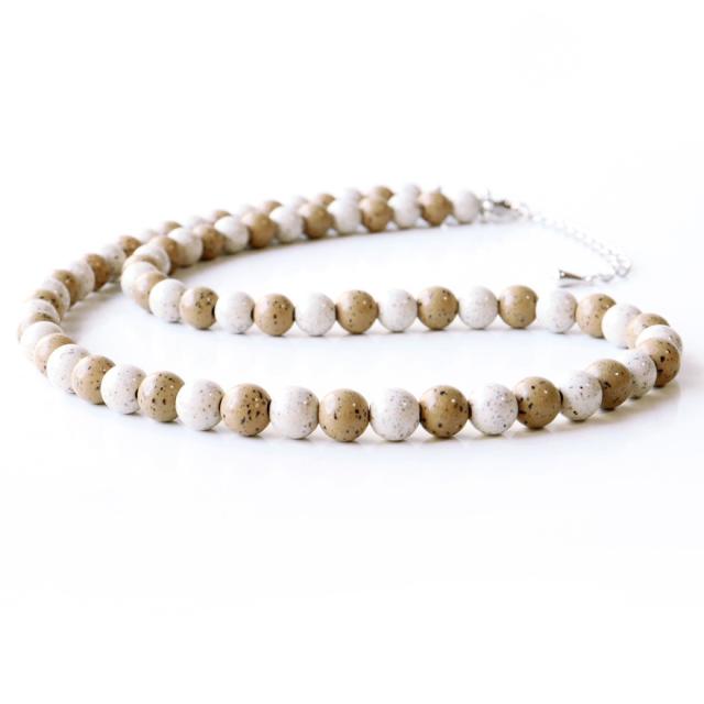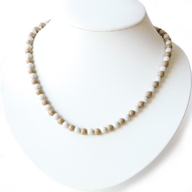 北投石 ネックレス メンズ レディース 6mm 橙色 白色 MIX カラー 長さ40cm 超遠赤外線 ホクトライト マグネット 選択可能