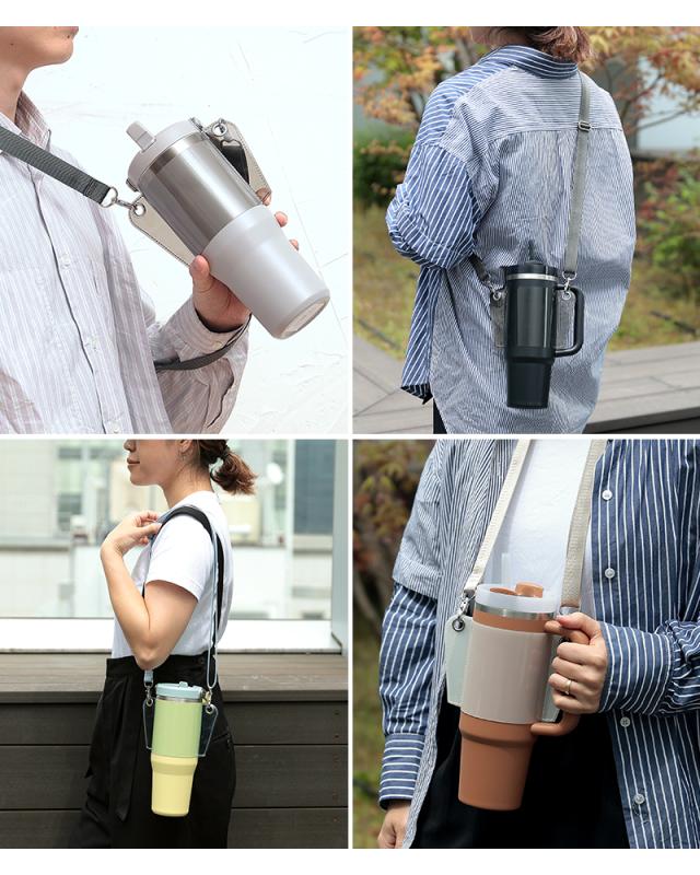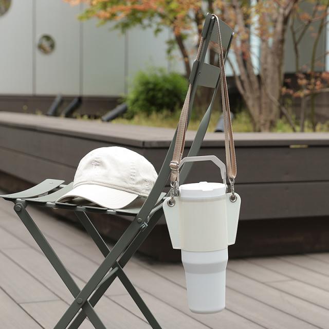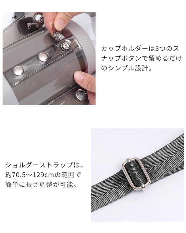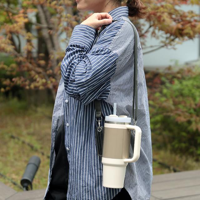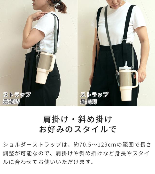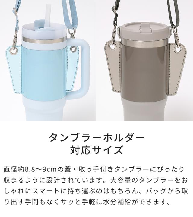直径約8.8〜9cmの蓋・取っ手付きタンブラーが収まるように設計された当店オリジナルのタンブラーホルダーです。長さ調整可能なショルダーストラップでさらに使いやすさと携帯性アップ◎。バッグから取り出す手間がないので、サッと水分補給ができます。両手をふさぐことなく持ち運べるので、アウトドアやレジャーはもちろん、ちょっとしたお散歩やお出かけなど多様なシーンで活躍します。