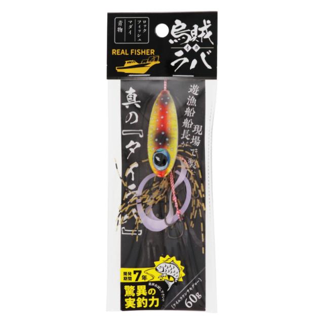 【REALFISHER】フィッシュイーターの大好物であるイカをイミテートした烏賊ラバ。本物のイカの目玉にこだわった「リアルスクイッドアイ」は捕食者の本能を強烈に刺激し、バイトへ持ち込む喰わせ力を実現。低速から中速巻きでは逃げ惑うローリングアクション、ステイでは魅惑のヒラヒラアクションを自動演出。ラバーフック部は遊漁船「セブン」がプロデュースするパーツを用いた3本段差フックで確実なフッキング不意な大物にも対抗できる安心強度設計となっている。[22new16]