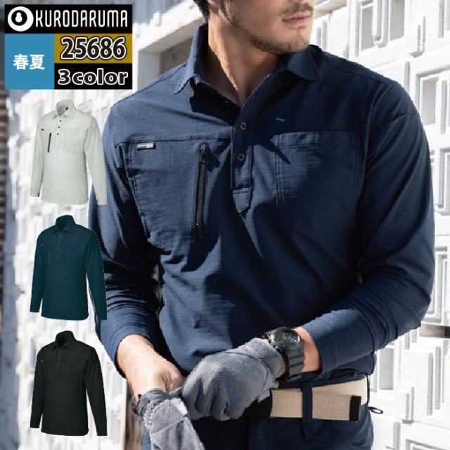 クロダルマ 作業服 インナー 25686 長袖ポロシャツ SS-LL 春夏用