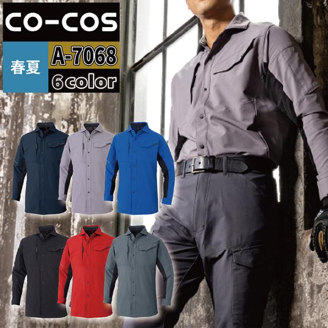 コーコス 作業服 春夏 A-7068 ストレッチ長袖シャツ SS-LL 作業着 CO-COS