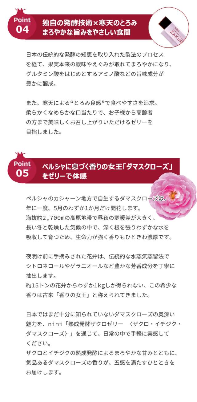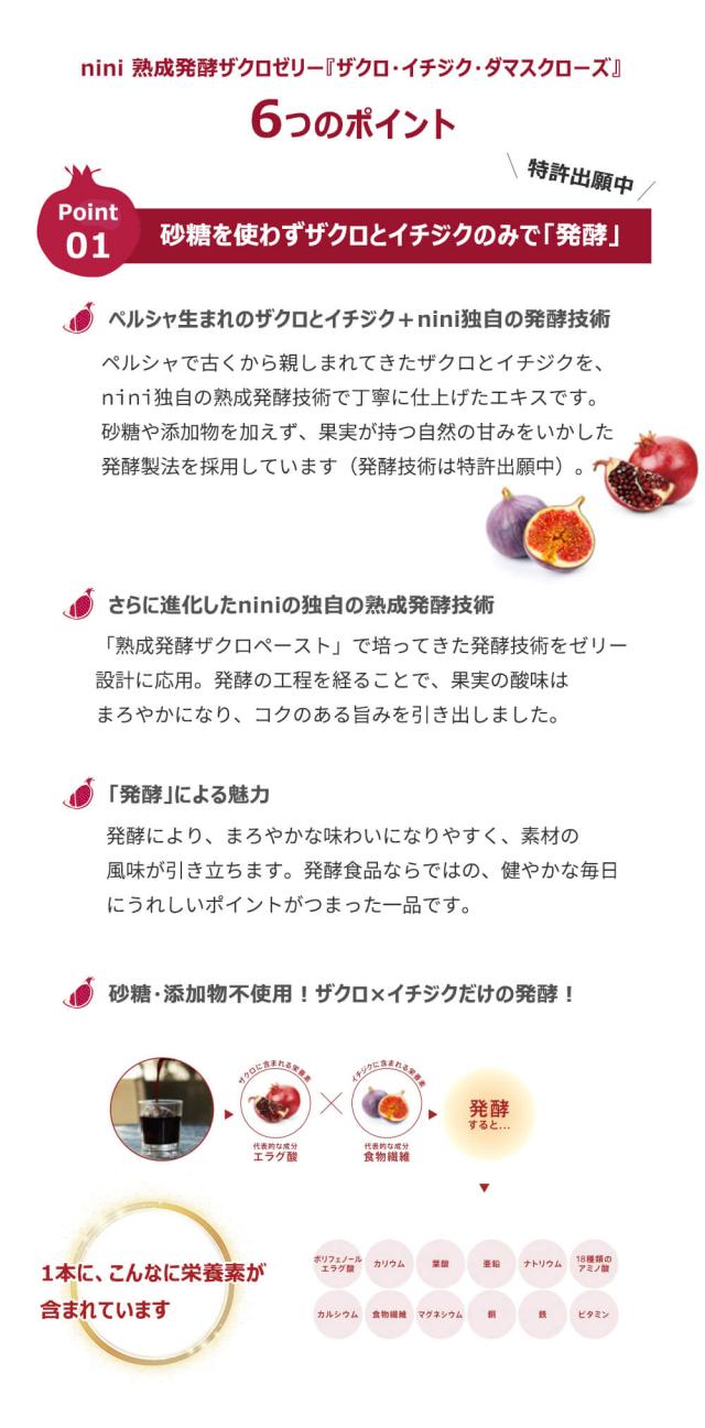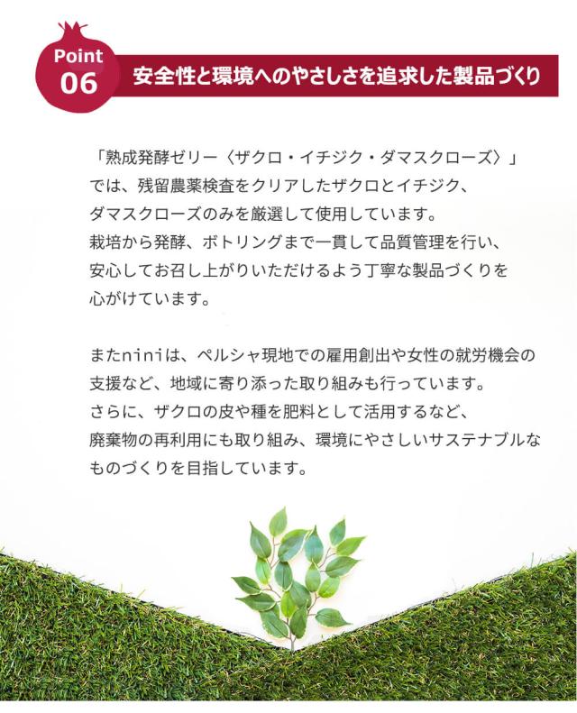 | 商品名 | nini 熟成発酵ザクロゼリー ザクロ・イチジク・ダマスクローズ |