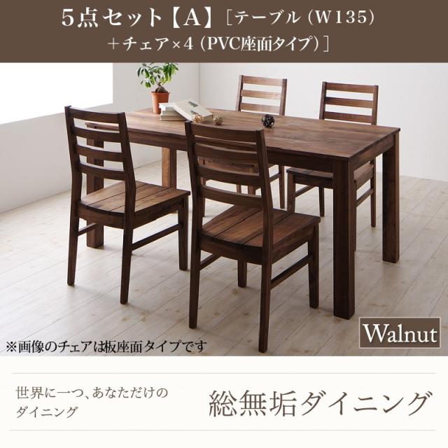 5点(机+チェア4脚)ウォールナット板座×PVC座幅135