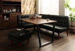 ダイニングテーブルセット 5人用 コーナーソファー L字 l型 ベンチ 椅子 おしゃれ 安い 食卓 レザー 合皮 カウチ 4点 ( 机+ソファ1+左肘ソファ1+スツール1 ) 幅120 西海岸 ヴィンテージ インダストリアル レトロ ミッドセンチュリー 高さ65 ロータイプ 低め ウォールナット