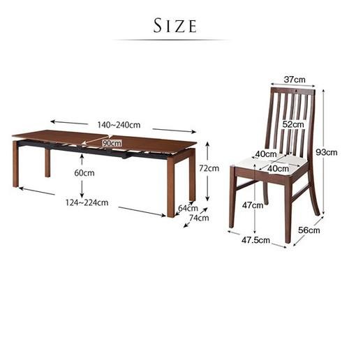 セット内容:テーブル(W140-240) 1、チェア 6、ベンチ 1