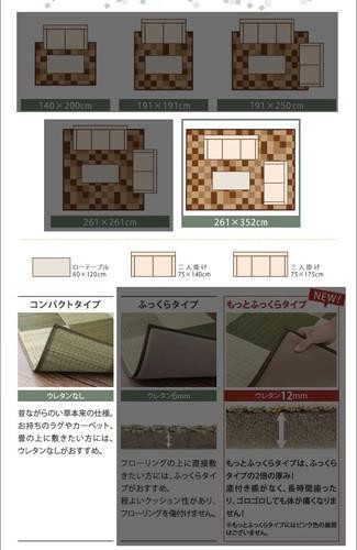い草ラグ い草マット い草カーペット ござ 国産 日本製 夏用 長方形 裏張りなし 裏貼りなし 260×350 6畳 8畳 可愛い かわいい 和風 アジアン モダン アーバン デザイン ブロックデザイン ブラウン 茶色 グレー グリーン 緑 ピンク