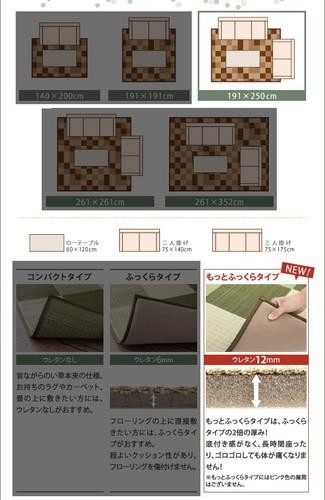 い草ラグ い草マット い草カーペット ござ 国産 日本製 夏用 長方形 防音 極厚 厚手 ウレタン入り クッション ふっくら ふんわり 裏付き 裏貼り 裏地あり 裏張りあり 190×250 3畳 可愛い 和風 アジアン モダン ブロックデザイン ブラウン 茶色 グレー グリーン 緑 ピンク
