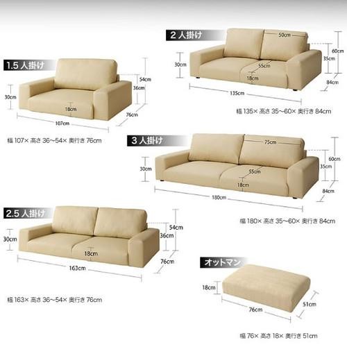 ソファ&オットマン/ワイド肘ロー2.5P