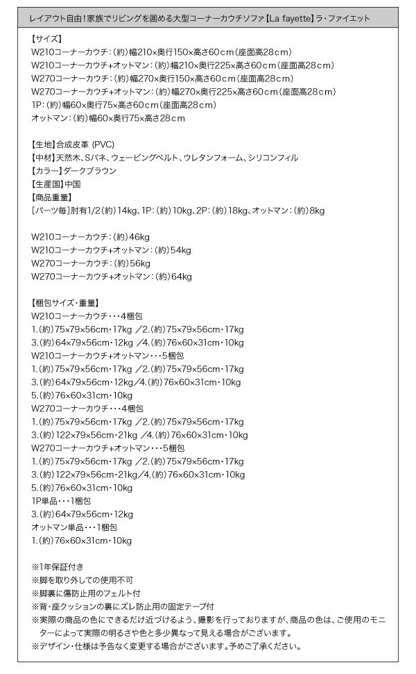 W270コーナーカウチ&オットマン・・・5梱包