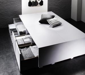 薄型プレミアムポケットコイルマットレス付 引出し4個 セミダブル