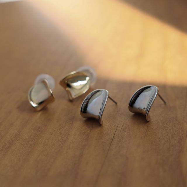 洗練されたニュアンスラインが美しい変形オーバルモチーフのピアスイヤリングです。