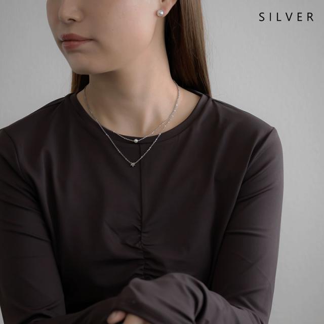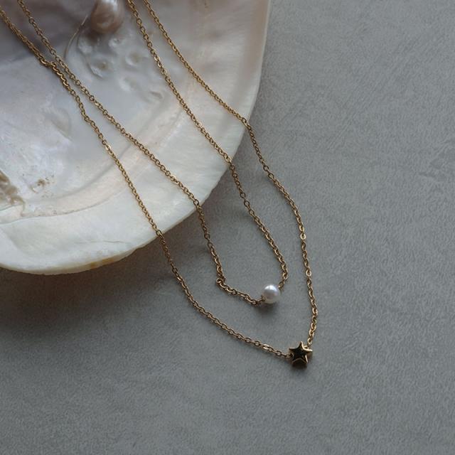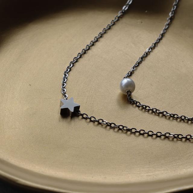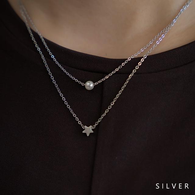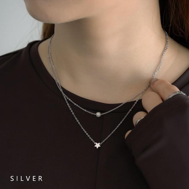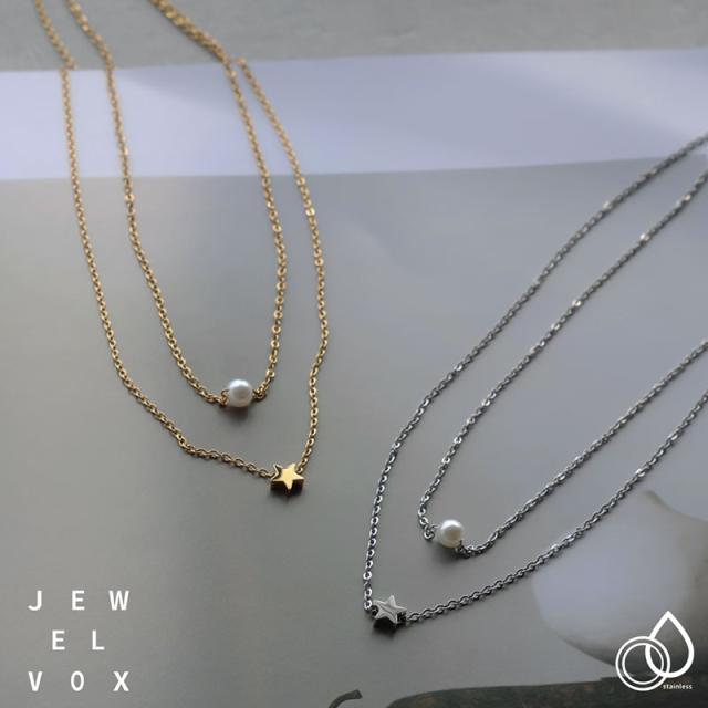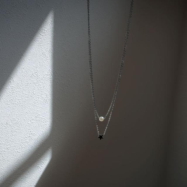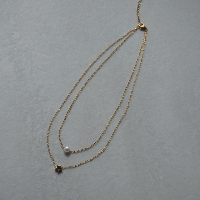 華奢なチェーンに上品なパールと、小さなスターモチーフをセットした2連デザイン。