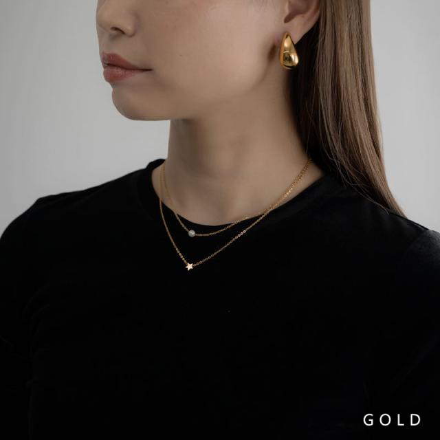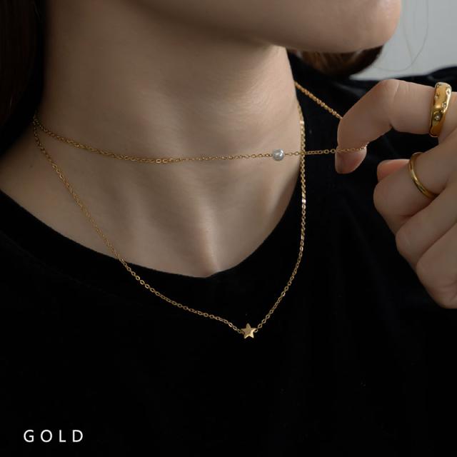 ネックレス レディース ステンレス製 金属アレルギー Pパール チェーン 2連 ゴールド シンプル 星 スター ニュアンス 普段使い デイリー カジュアル 結婚式 オケージョン 仕事 オフィス 女性 大人女子