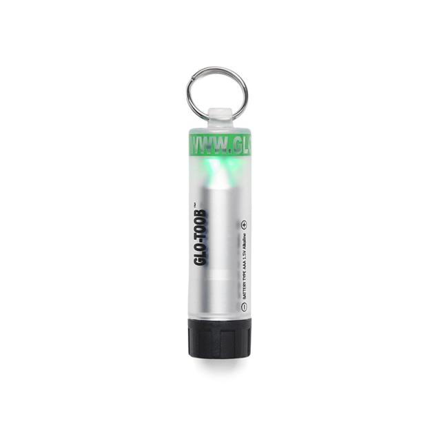 GLO-TOOBより、視認性に優れた防水仕様のLEDマーカーが登場。トレッキングでの認識灯やサイクリング時の安全灯、手元を照らす簡易ランプとしてはもちろん、緊急時のエマージェンシーツールとしても機能します。ウォータースポーツにも耐えうる防水性を持っていますので、様々なシチュエーションに対応することが出来ます。スイッチをすばやくON/OFFすることで、100%点灯・25%点灯・ビーコンモードへの切り替えが可能。入手しやすくランニングコストの低い単4電池を使用しますので、気兼ねなく使用できるのも魅力です。