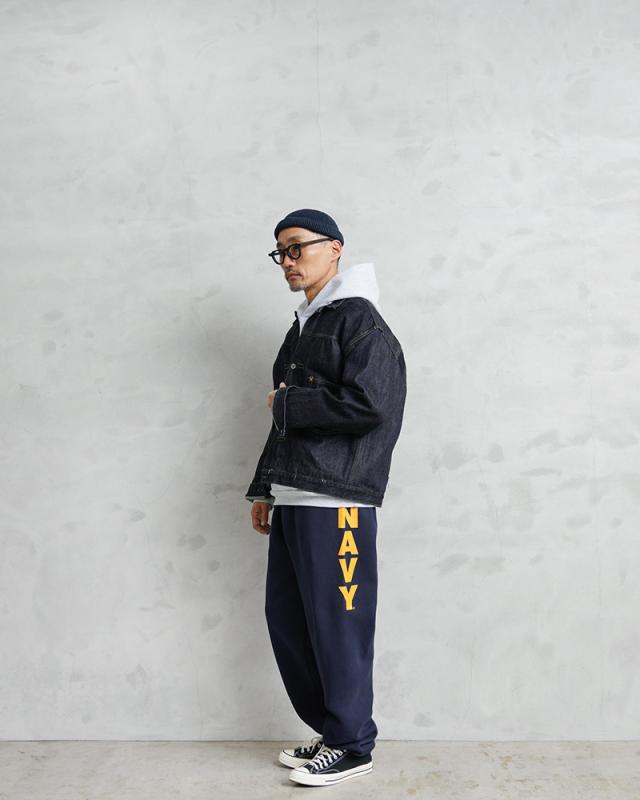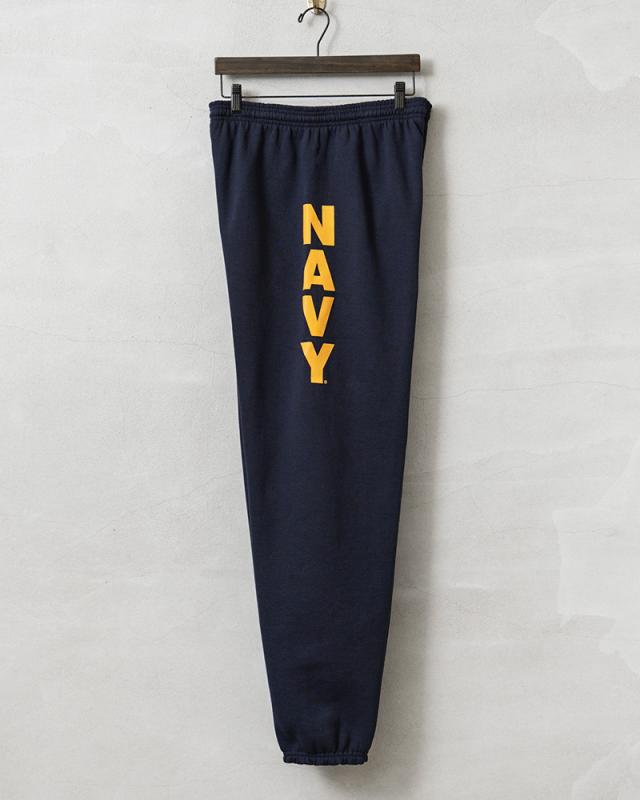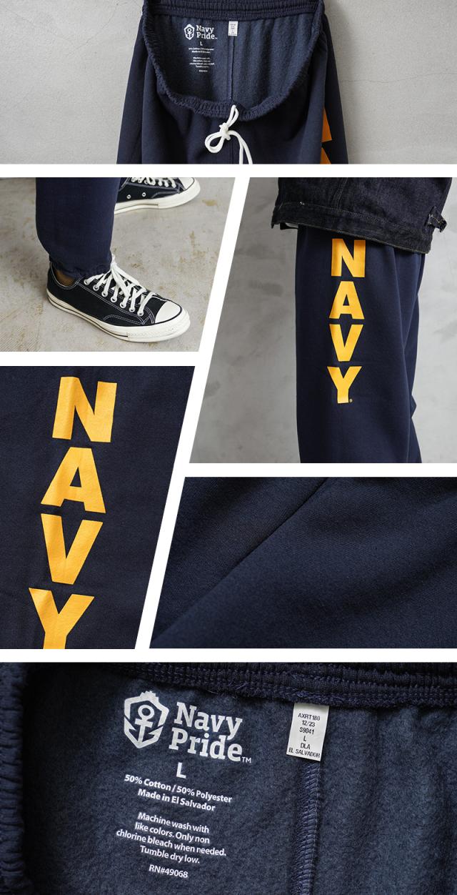 サイドのNAVYロゴプリントが目を惹くスウェットパンツが登場。一般のラインでは販売されていない、軍関係向けに生産されたミリタリーラインで、米海軍公式ライセンスを取得しているNAVY PRIDE(ネイビープライド)が製造したアイテムです。9オンスという絶妙なシーズンレスに着用できるウェイト感。コットン50%、ポリエステル50%の速乾性にも優れた素材で、裏側は起毛タイプとなっており保温性も抜群!ウエストと裾は、適度なフィット感を得られるゴムシャーリング、ウエストはドローコードで絞って調整が可能。