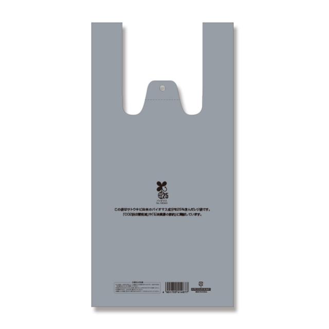 バイオマス素材の配合率が25%以上の商品で、有料化対象外(無料で提供できる)の買物袋です。