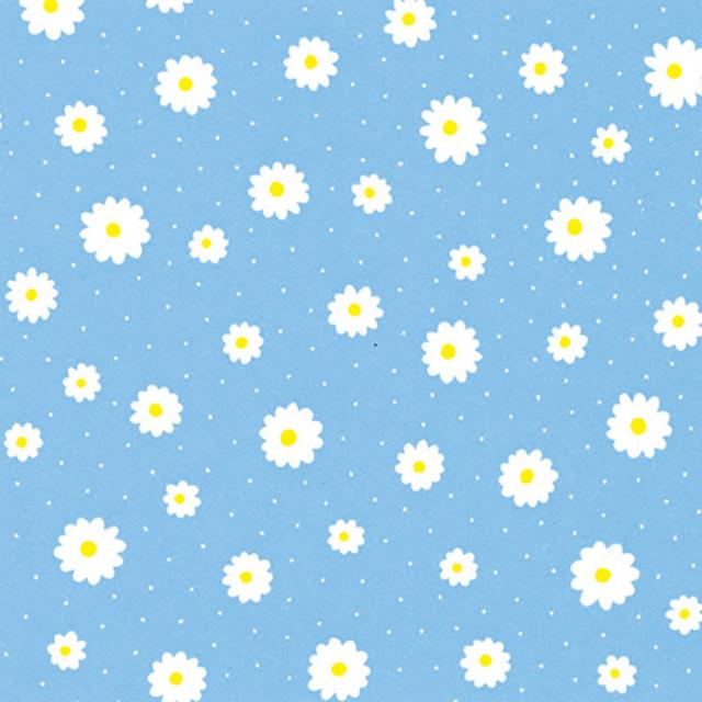 ブルー地に白のマーガレットの花が散りばめられたかわいい雰囲気の包装紙です。