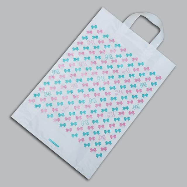 持ち手がループタイプのガゼット付ポリ手提げ袋です。
