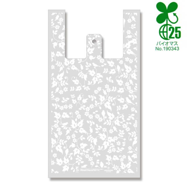 植物由来のバイオマス原料を25%配合した、環境配慮型のポリ袋です。主原料はサトウキビで、育成時の光合成でCO2を吸収するのでCO2の削減に貢献します。