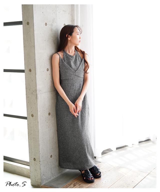 春新作 大人の色っぽさ漂うサマーツイードキャミワンピース レディース ファッション ワンピース キャミソール スリム ホルターネック ノースリーブ ロング 30代 40代 50代 60代 サワアラモード sawaalamode otona 大人 cawaii 可愛い 洋服 かわいい服 aldt-317r3815