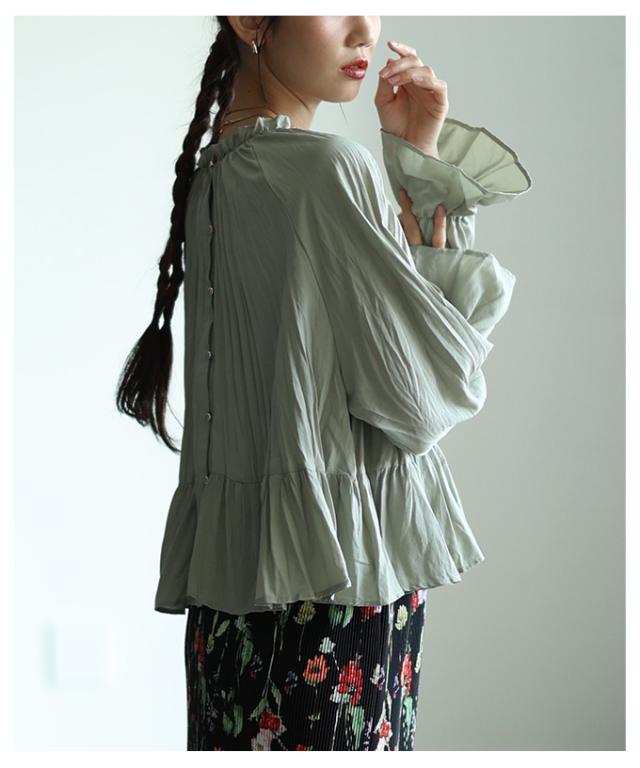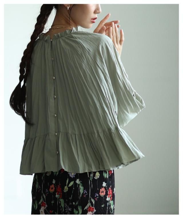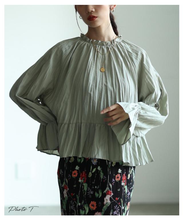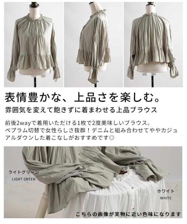 春新作 前後で楽しめる2wayシャーリングペプラムブラウス レディース ファッション トップス ブラウス シャツ 白 ホワイト 緑 秋服 大人可愛い 20代 30代 40代 レディースファッション カジュアル 体型カバー おしゃれ きれいめ ママ アラモード alamode alwj-755673