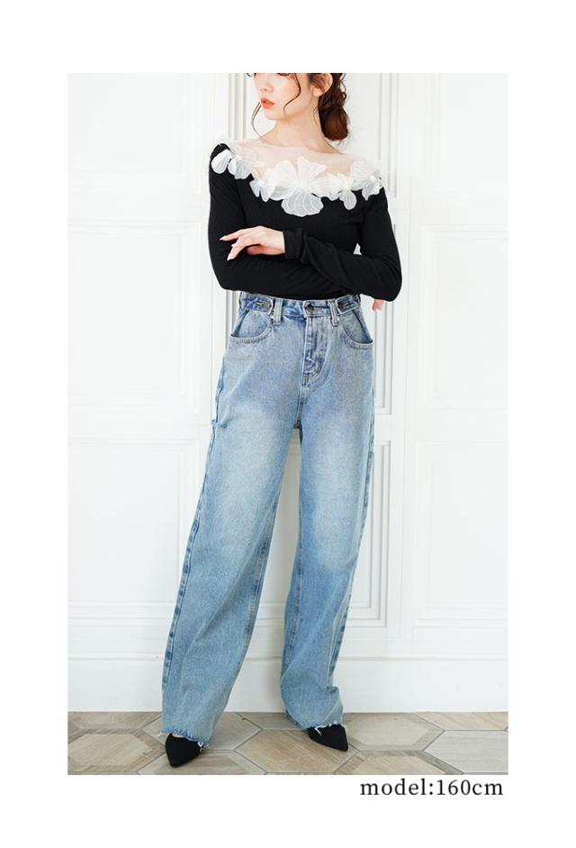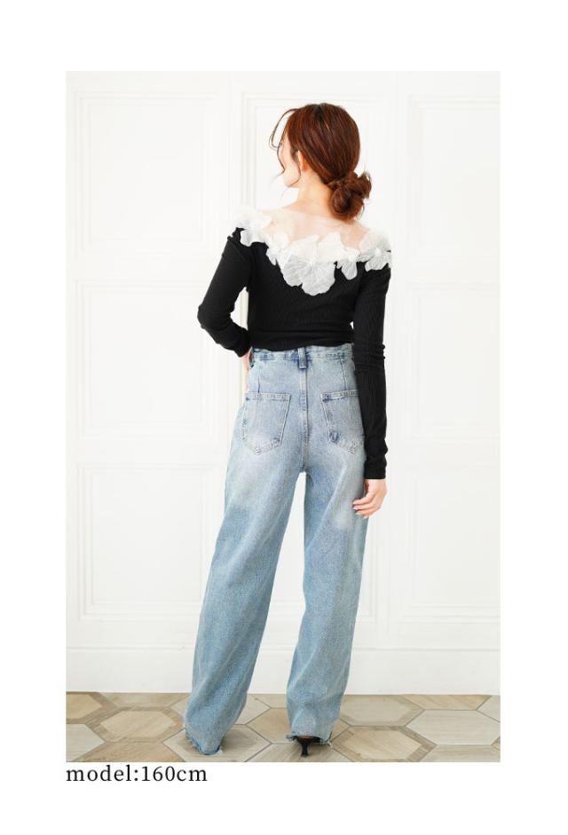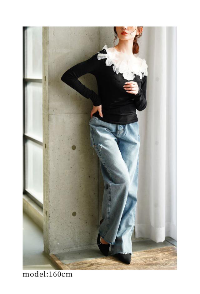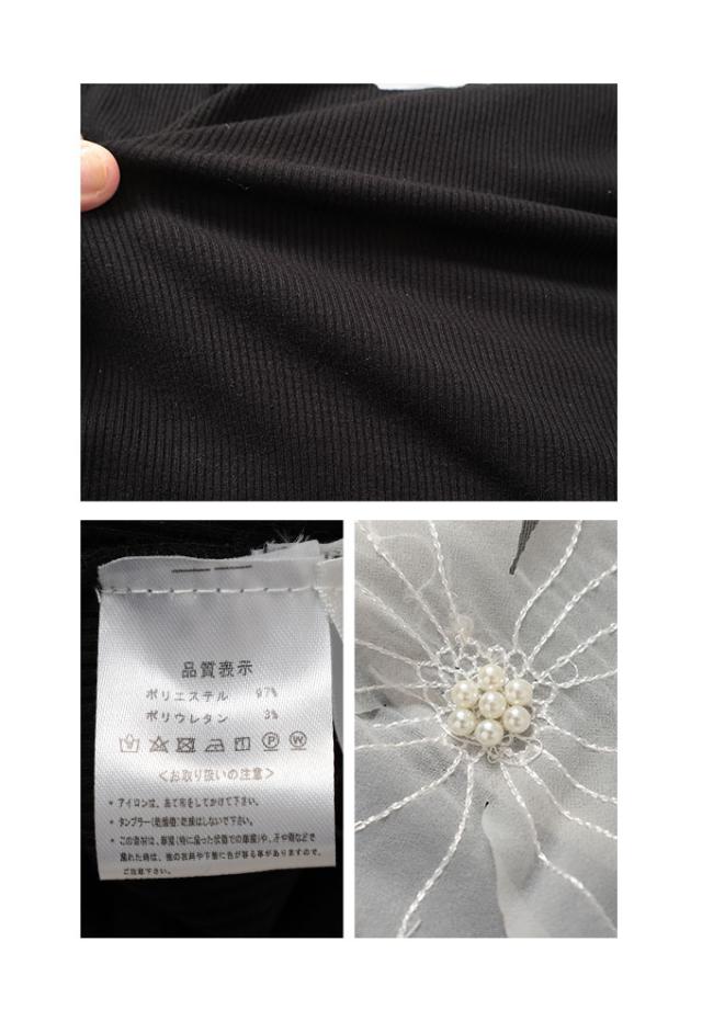 商品名: チュールフラワーモチーフリブトップス