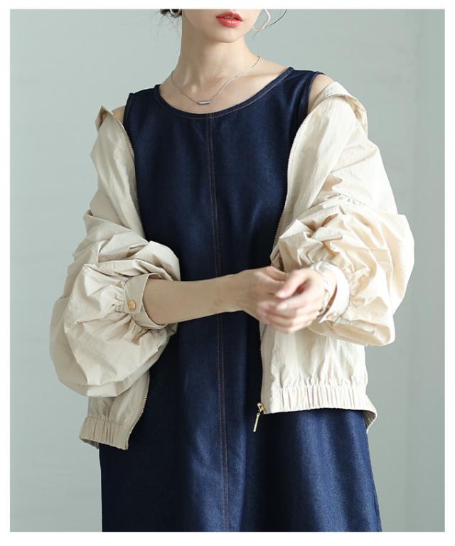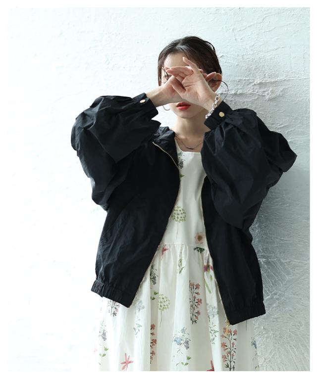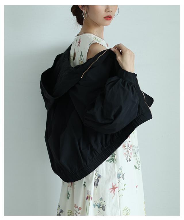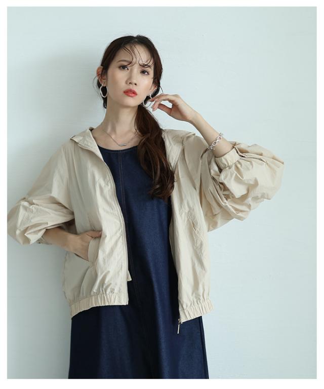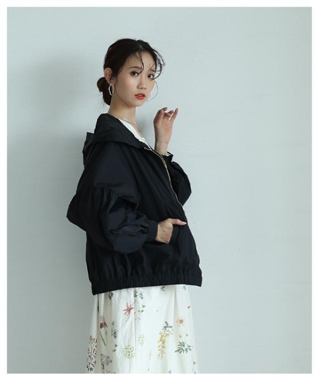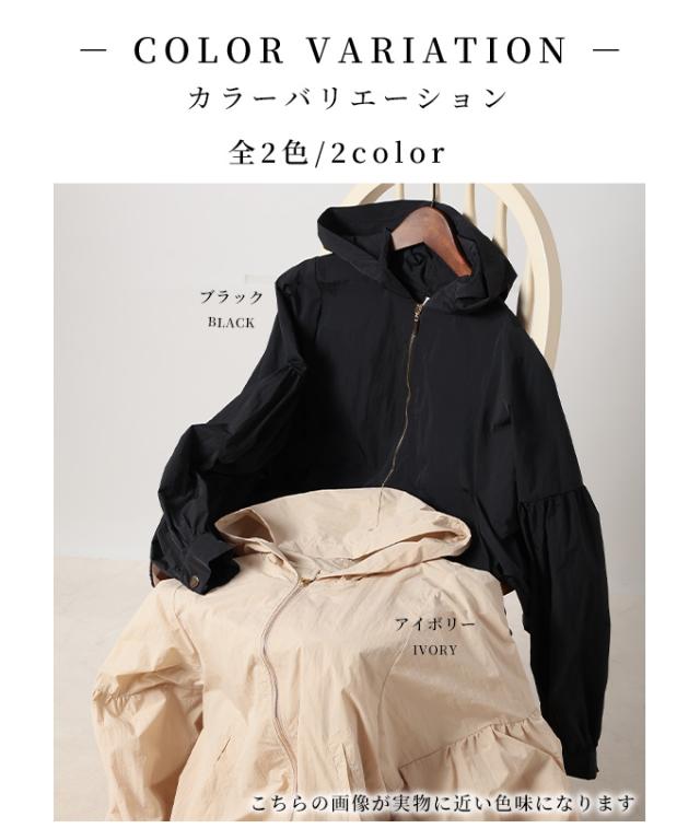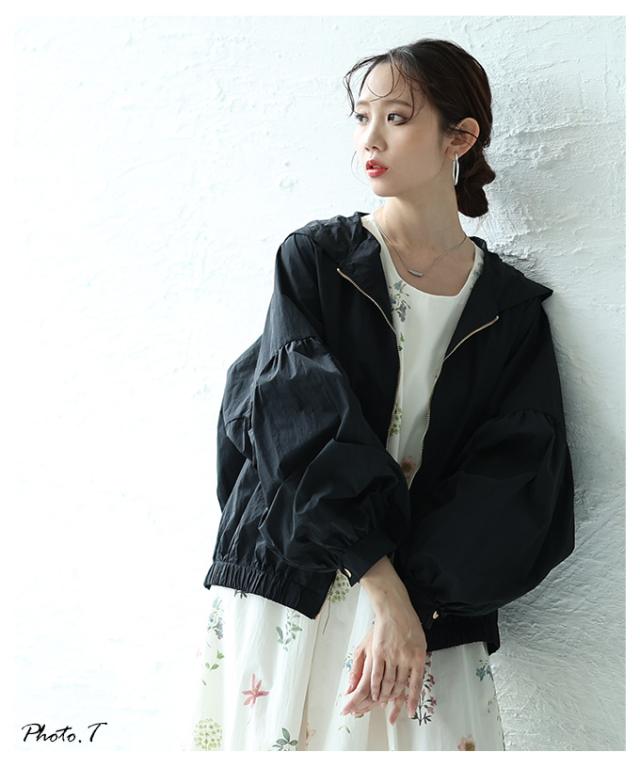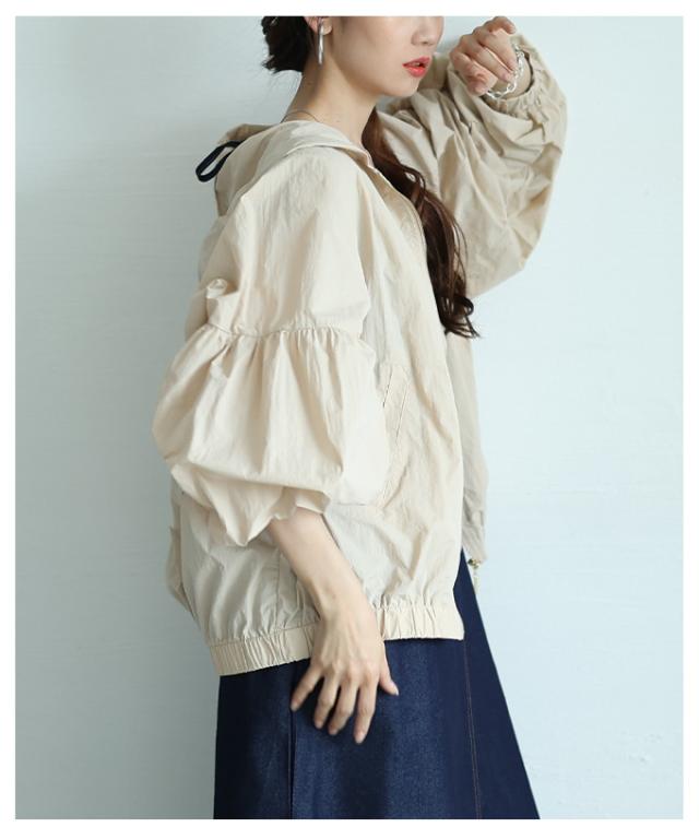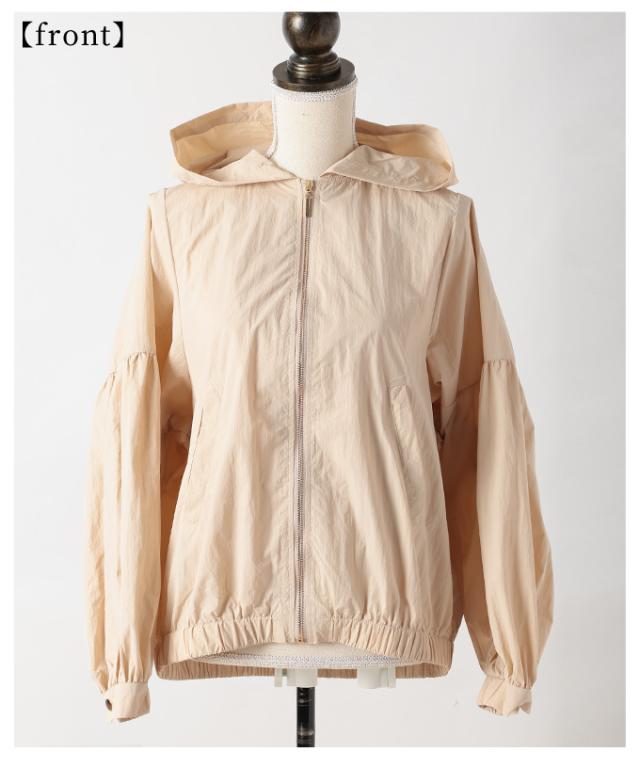商品名: ボリューム袖が愛らしい微撥水加工パーカーブルゾン