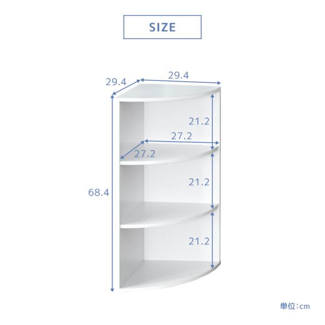 キューブボックスα コーナーラック おしゃれ スリム 木製 玄関 リビング カラーボックス コーナー 三角棚 トイレ キッチン コーナー棚 カウンター下 収納棚 洗面所 収納ラック オープンラック 3段 幅30 奥行30