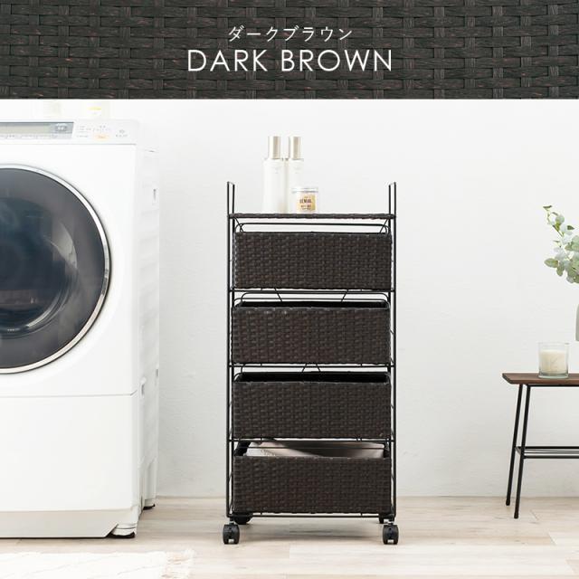 湿気に強い 人工ラタン ランドリーチェスト 幅40 【送料無料】 ラタン調 おしゃれ 4段 引き出し ランドリーラック スリム ロータイプ おすすめ 白 ホワイト グレー ブラウン 洗面所 収納 キャスター付き