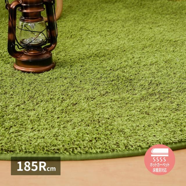 お部屋でキャンプ気分 芝生風 ラグマット 円形 185cm 【送料無料】 子供部屋 おしゃれ グリーン 人工芝 クッション ウレタン 滑り止め キッズ 芝生ラグ 緑 丸型