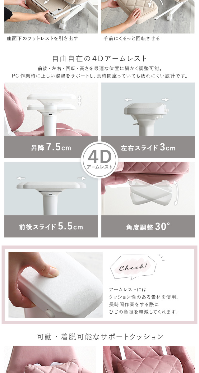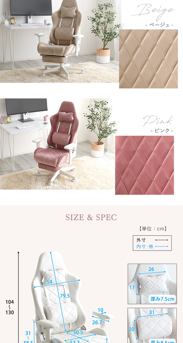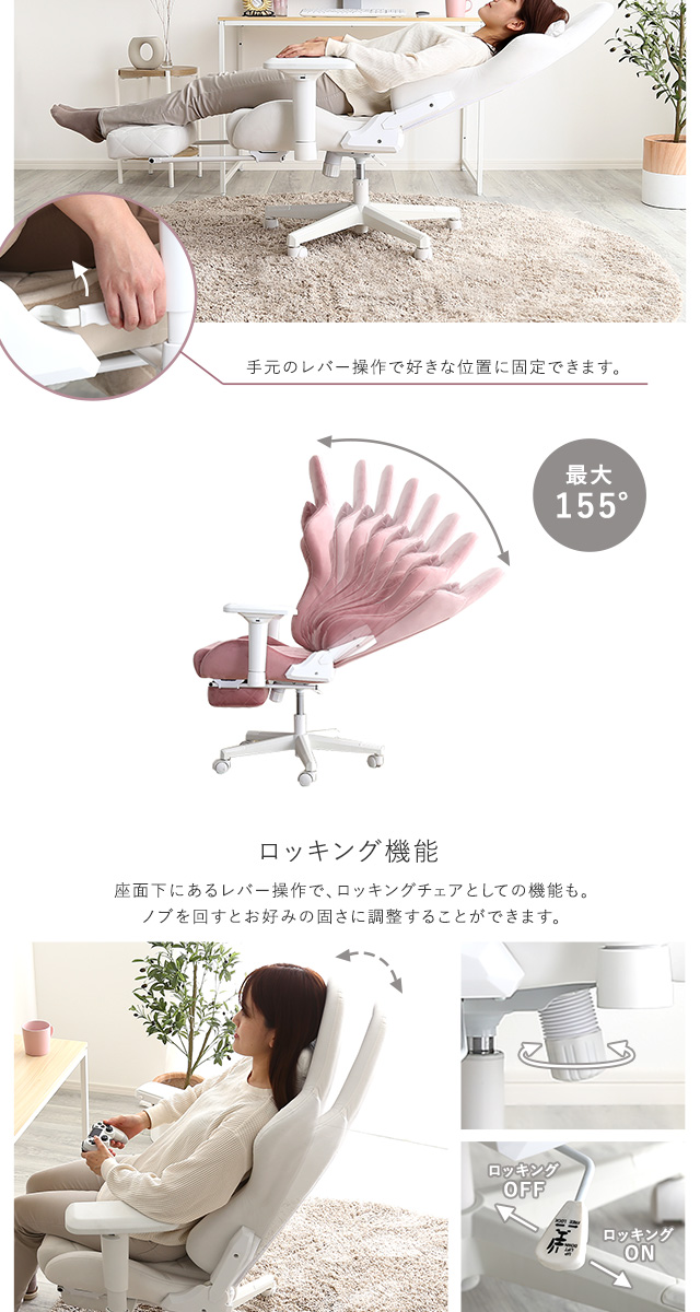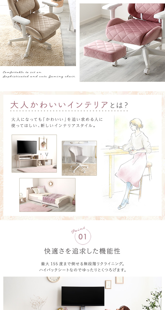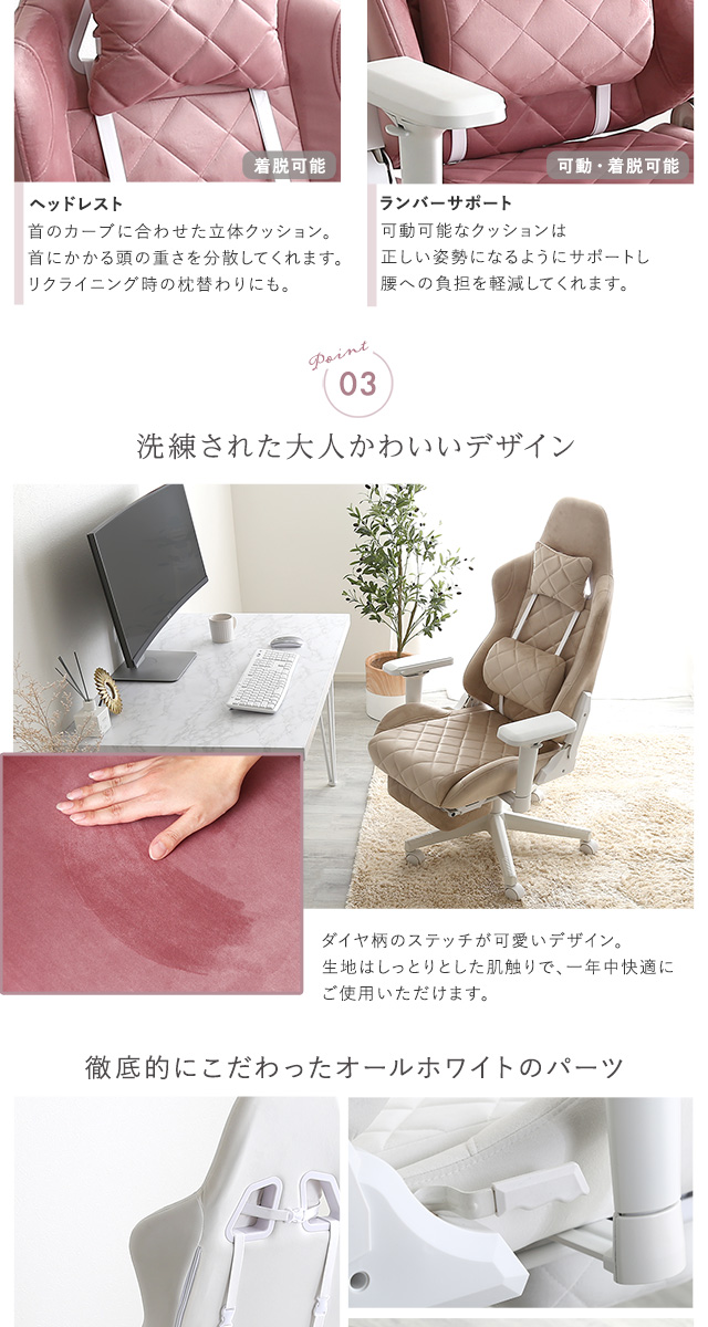 女性にかわいい ゲーミングチェア 【送料無料】 肘付き フットレスト付き おしゃれ 可愛い 白 ホワイト ピンク ベージュ 女性 おすすめ 疲れない 安い 激安 かっこいい インテリア クッション ランバー フットレスト リクライニングチェア デスクチェア