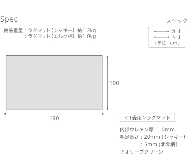 ラグマット単品 >1畳(190x100) >1.5畳(185x130) >2畳(186x186) >3畳(240x200) |