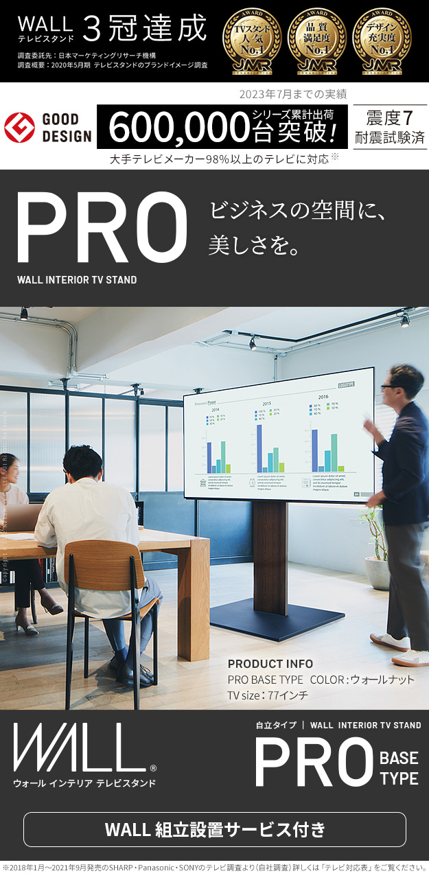 組立設置付き WALL インテリア テレビスタンド PRO ベースタイプ 【送料無料】 壁寄せ おしゃれ テレビ台 会議 会社 大型 80インチ 80型 ハイタイプ 高さ調整 床置き 完成品